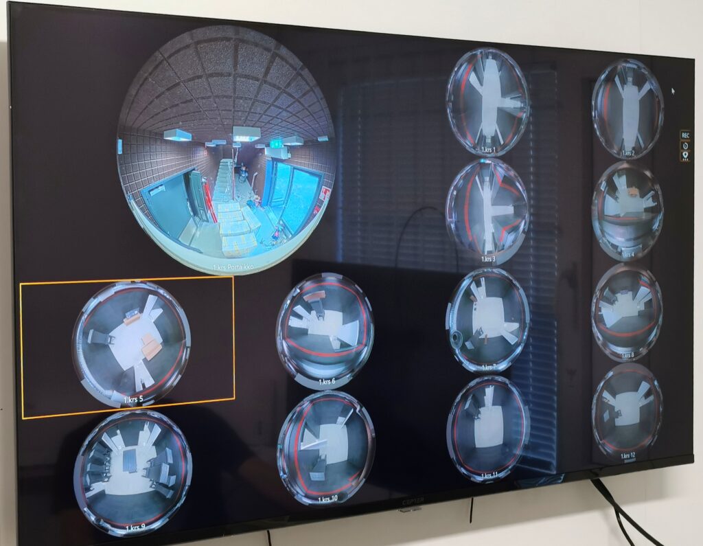Rakennuksessa on noin 30 kameraa, jotka kuvaavat katosta huonetiloja 360 asteen näkymillä. Luotitalon vieressä olevassa valvomossa voidaan videovirrasta valita oikeat kamerat toimivan joukon liikkeitä seuraamaan. Kuvakulmia pystyy rajaamaan tiukemmin.