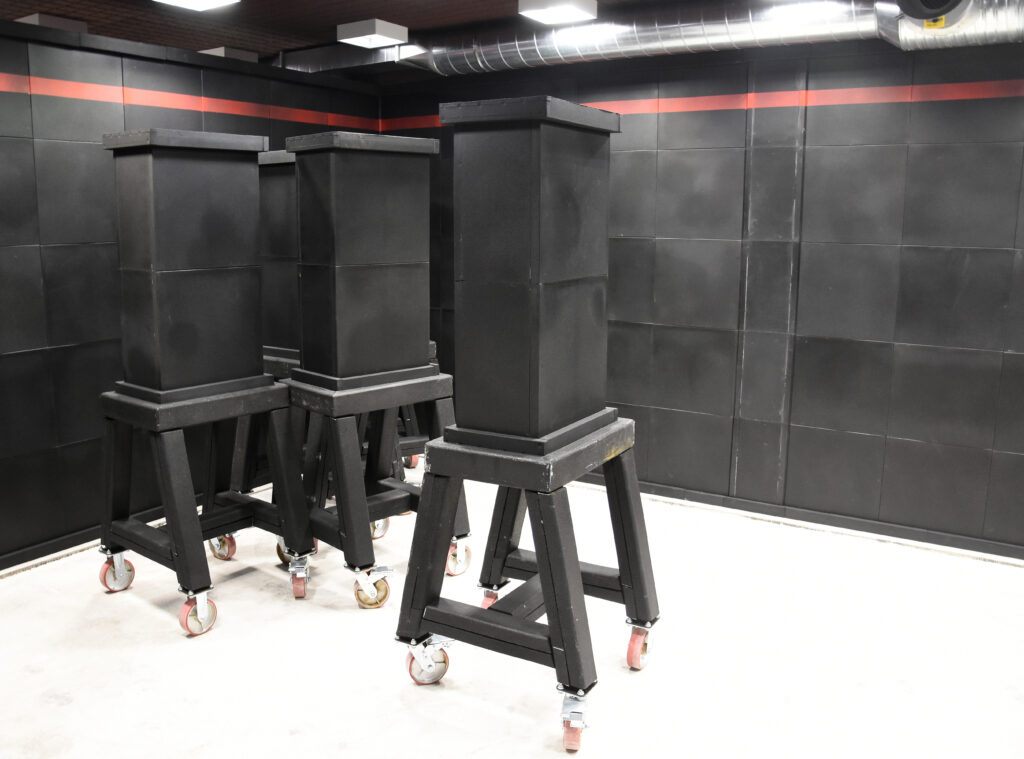 Lisäksi rakennuksen kerrosten välisessä porraskäytävässä ja hissikuilussa voidaan myös ampua kovilla. Jälkimmäisessä voidaan harjoitella myös köysilaskeutumisia.
