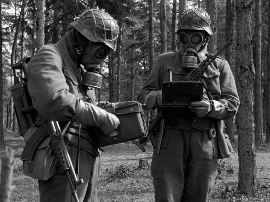 RK 60 kokeiluissa yhdessä uudenmallisen maastosuojavaatetuksen kanssa.